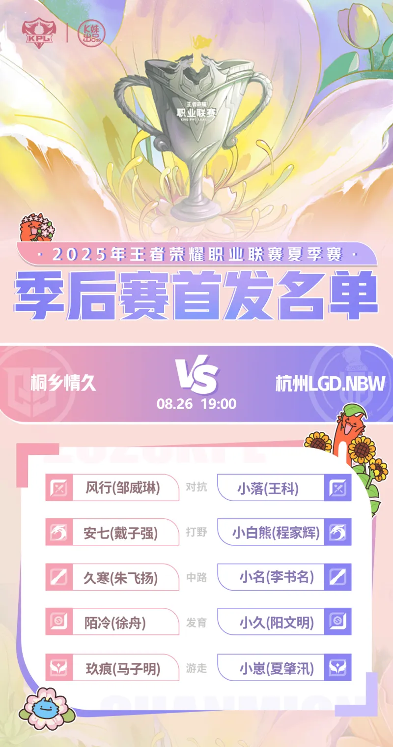 2025KPL夏季赛季后赛D6-败者组第二轮【首发名单】送达!